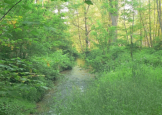 Heimlich nur das Bächlein schlich,                              Zweite Ampel rechts hinaus,
